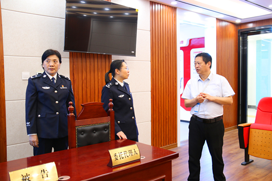 在校长贾洪波的陪同下一行先后参观特色社团功能室、心理健康辅导中心和法治教育中心。鲁智玲所长等领导对学校建立的心理咨询室和家校共育工作、学校法治教育和预防未成年犯罪工作给予了高度评价。实地参观结束后,双方在三楼会议室开展座谈交流。河南省未成年人强制隔离戒毒所领导对郑州99中实操性强、有针对性的矫治措施和完善的硬件设施给予高度评价,表示双方可以搭建平台,相互协作,共同为学生健康成长保驾护航。