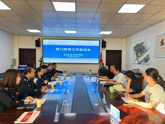 10月31日下午,河南省未成年人强制隔离戒毒所党委书记、所长鲁智玲,党委副书记、政委董军红一行七人到郑州99中调研交流。