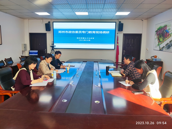 10月26日,郑州市政协委员田丽静,范会芳及王蔚一行三人到郑州99中进行专门教育现场调研。