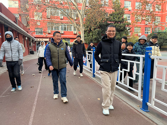 12 月19 日下午,郑州99中校园内洋溢着欢声笑语与青春活力,全校师生齐聚操场,共同开展迎冬至师生趣味健步走。