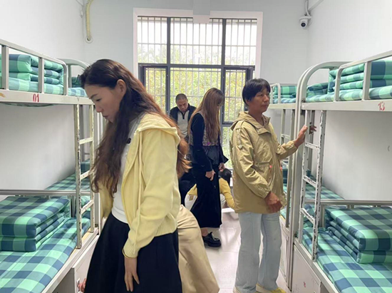 表演环节结束后,家长们移步学生宿舍参观。教官现场演示标准化内务整理,教师和司法社工从行为习惯养成和法治教育角度,讲解了学校的作息制度和管理要求。整洁的环境、统一的物品摆放,充分展现了学生的教育转化成果,赢得了家长们的广泛好评。