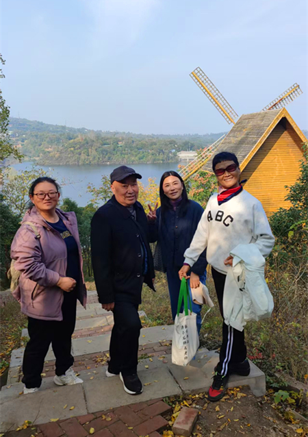 参观间隙,大家围坐一堂,或畅谈退休后的生活趣事,分享养生心得;或围坐棋盘旁切磋棋艺,楚河汉界间尽显从容风采,欢声笑语中满是久别重逢的温情。午后,天朗气清,大家一同前往始祖山登高祈福。登山途中,老同志们精神矍铄,步伐稳健,时而畅谈往昔执教岁月,时而感慨学校发展成就,深厚的同事情谊在秋风中愈发浓厚。