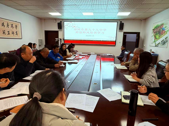 为深入贯彻落实《教育强国建设规划纲要 (2024-2035 年)》和《中共中央 国务院关于弘扬教育家精神加强新时代高素质专业化教师队伍建设的意见》要求,健全新时代师德师风建设长效机制,筑牢教育强国根基,11 月 7 日,郑州市第九十九中学组织全体教师开展师德师风专题培训学习会,以理论学习强信念,以制度规范明底线,着力打造一支师德高尚、业务精湛的高素质教师队伍。