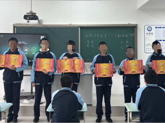 为深入贯彻禁毒宣传教育,强化青少年法治意识与价值引领,我校法治老师、劳动老师及语言表达老师于近期以“辩以明法,论以正心”为主题,在课堂上开展了一场融合法治教育与价值观塑造的系列辩论活动。活动围绕“涉毒处罚应侧重教育矫治还是依法严惩”与“金钱是不是万能的”两大辩题,引导学生在观点交锋中明晰法律边界、在思想碰撞中端正价值取向,为青春成长筑牢法治与道德的“双重防线”。