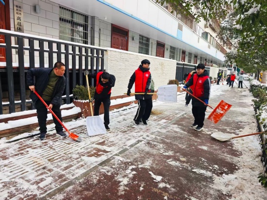 雪情就是命令,行动彰显担当。学校发出扫雪倡议后,师生志愿者闻令而动,手持铁锹、扫帚迅速集结,一抹抹亮眼的“志愿红”点缀在皑皑白雪间。现场分工明确、协作有序,铲雪、扫雪、清运积雪各司其职,大家热情高涨,干劲十足的身影在白雪映衬下格外醒目。令人动容的是,不少非志愿者同学也主动加入队伍,以举手之劳传递互助友爱的正能量。党员教师更是以身作则,与同学们并肩作战,全力对校门口、教学楼出入口、食堂周边、操场等人员密集区域的积雪冰块进行集中清理。铁锹与地面摩擦的声响、师生们的欢声笑语交织在一起,汇成了冬日里最温暖的乐章。