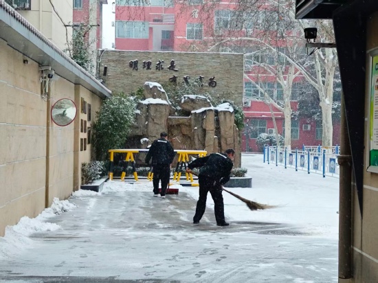 近日,一场瑞雪悄然覆盖郑州市第九十九中学,为校园披上了银装,却也给师生出行带来了不便。为保障校园通行安全,筑牢校园安全防线,1月20日清晨,学校迅速启动恶劣天气应急预案,以雪为令、闻雪而动,第一时间组织师生开展扫雪除冰志愿行动,用实干与温情驱散冬日寒意。