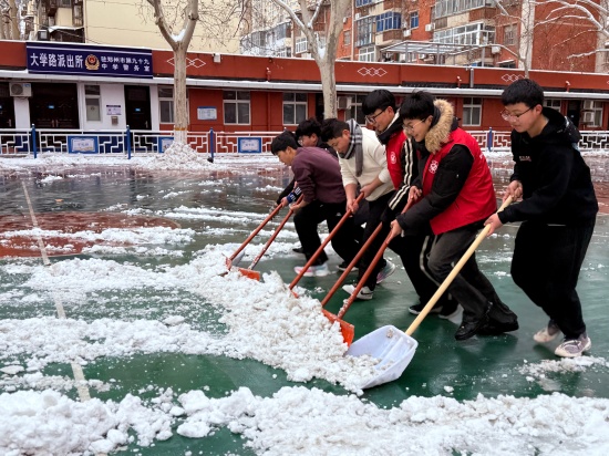 经过数小时的连续奋战,校园内外各主要通行路段、重点区域的积雪冰块基本得到清除,为全校师生营造了安全、畅通、整洁的出行环境。此次扫雪行动,不仅切实保障了校园出行安全,更生动展现了郑州市第九十九中学师生团结协作、甘于奉献的精神风貌。这堂生动的“雪地德育课”,让责任与担当的种子在每一位学子心中生根发芽,也让志愿精神在校园里蔚然成风。