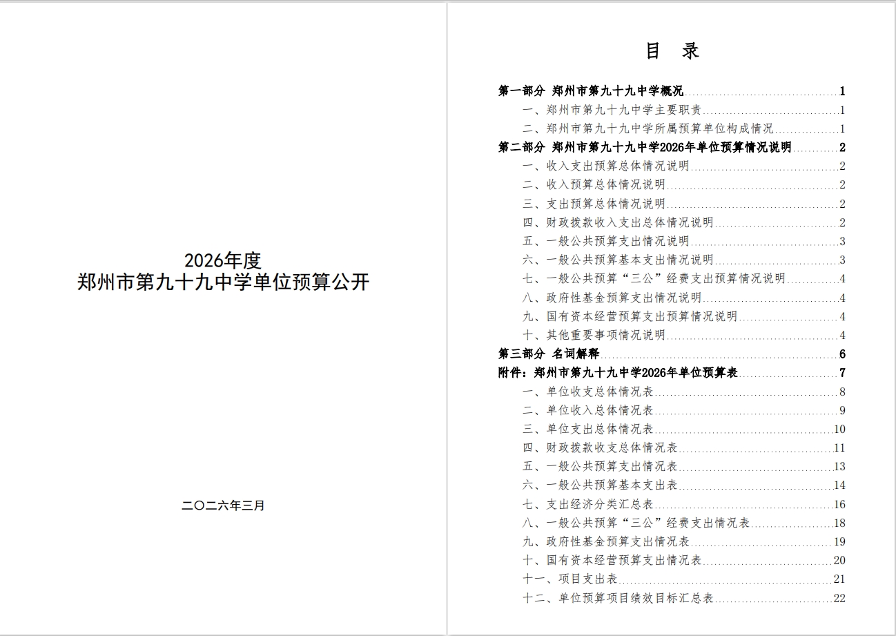 2026年郑州市第九十九中学单位预算公开.pdf